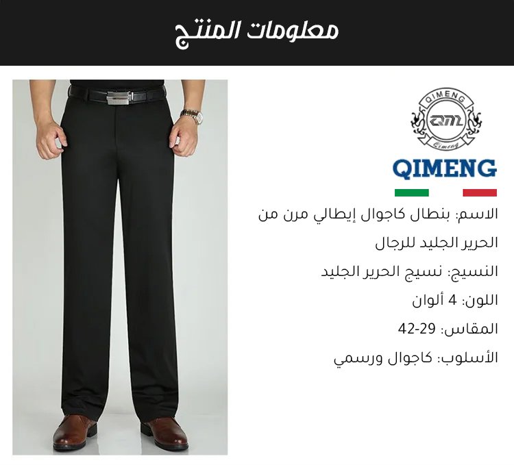 بنطال كاجوال إيطالي مرن من الحرير الجليد للرجال