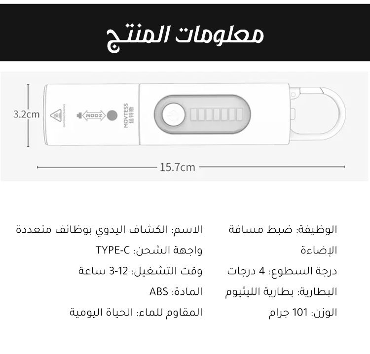الكشاف اليدوي الألماني بوظائف متعددة من مادة الألومنيوم